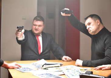 Ведущий в образе представителя мафии прибывает на место. Не тратит время даром: вводит в курс дела и раздает материалы игры. Вы узнаете, какого персонажа предстоит сыграть. Остается лишь покрепче вцепиться в рукоятку пистолета и погрузиться в обсуждение проблемы — где ценные картины и кто предатель?